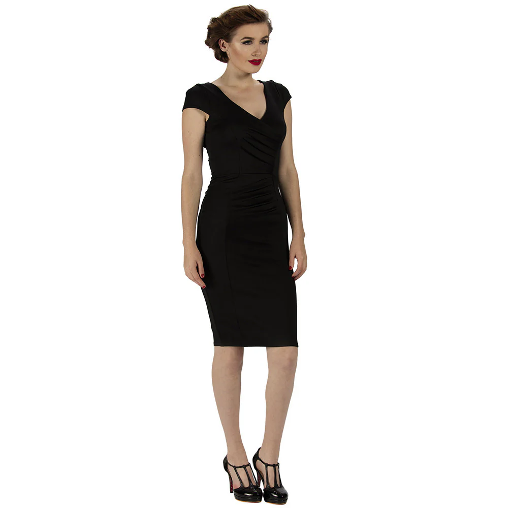 Black Capped Sleeve Bodycon Pencil Wiggle Dress
