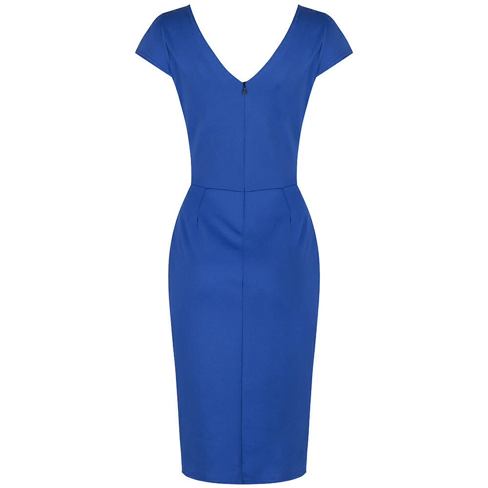 Royal Blue Capped Sleeve Bodycon Wiggle Dress