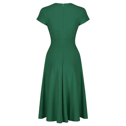 Emerald Green A Line Vintage Crossover Capped Sleeve Tea Swing Bridesmaid Dress