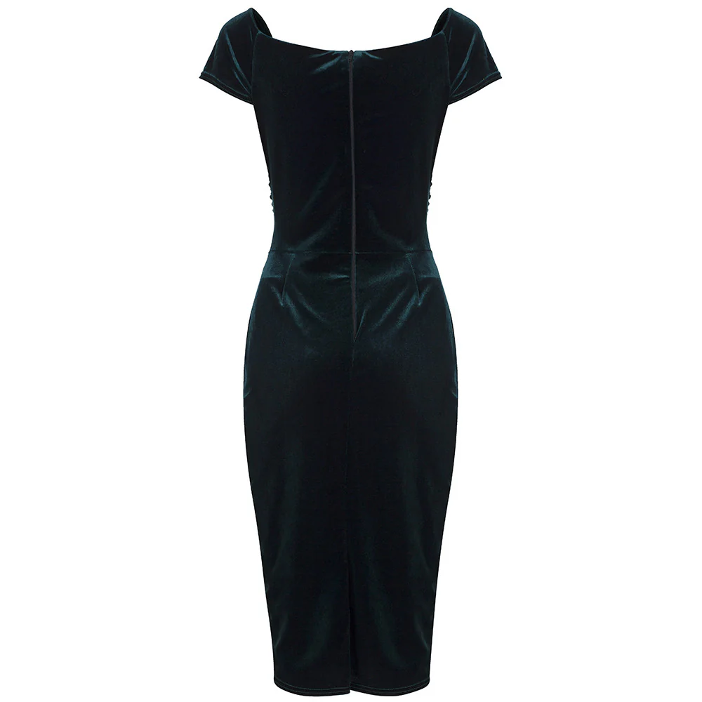 Green Velour Cap Sleeve Crossover Wiggle Dress