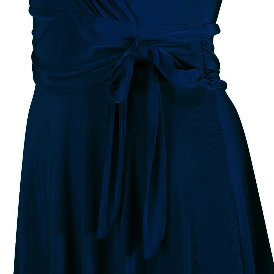 Navy Blue Cap Sleeve V Neck Wrap Top Swing Dress