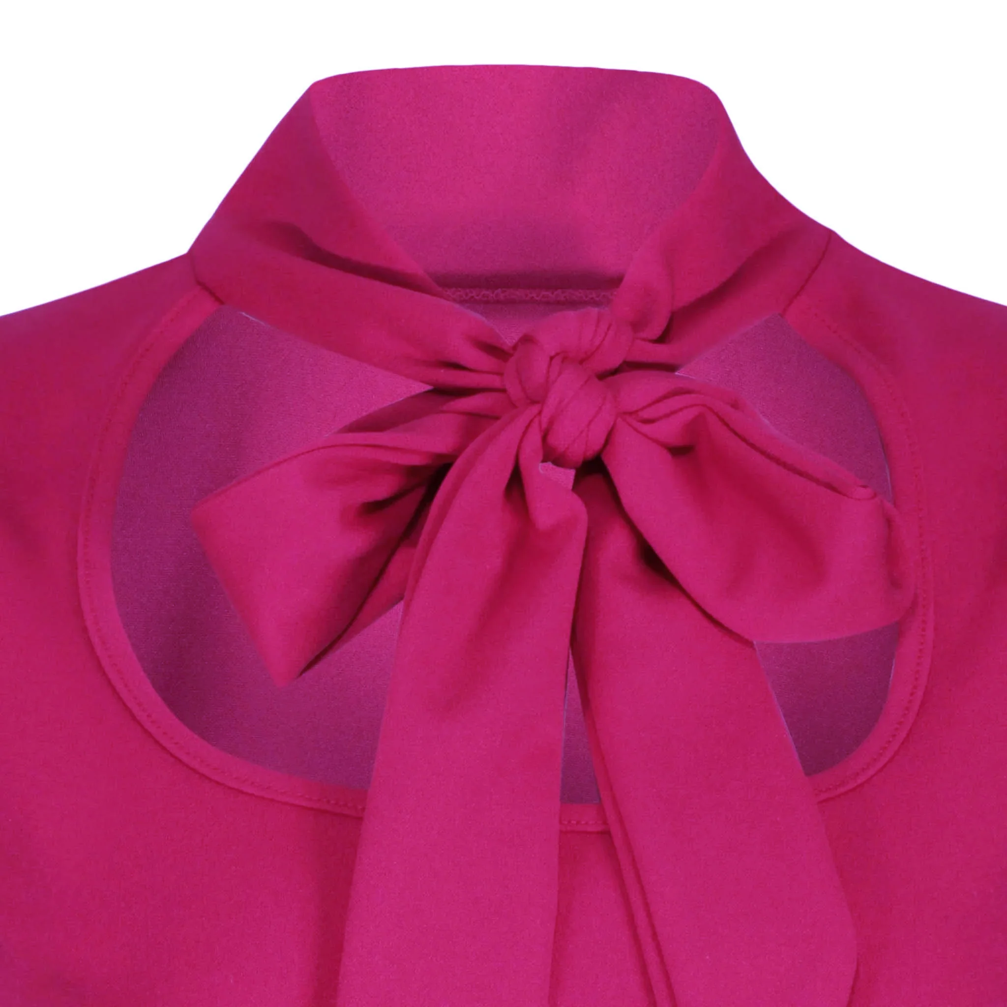 Vintage Amaranth Puff Sleeve Tie Neck Top