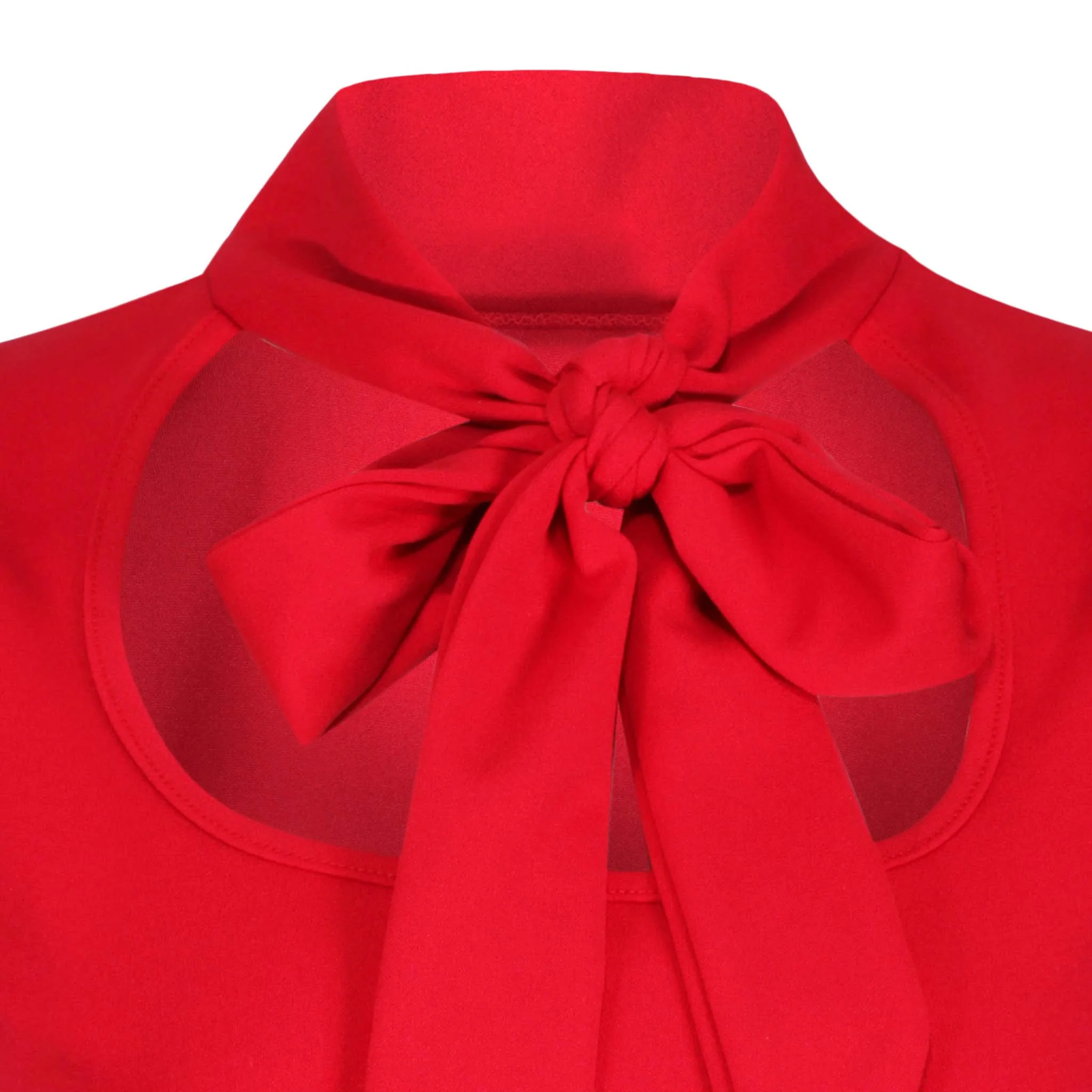 Vintage Red Puff Sleeve Tie Neck Top